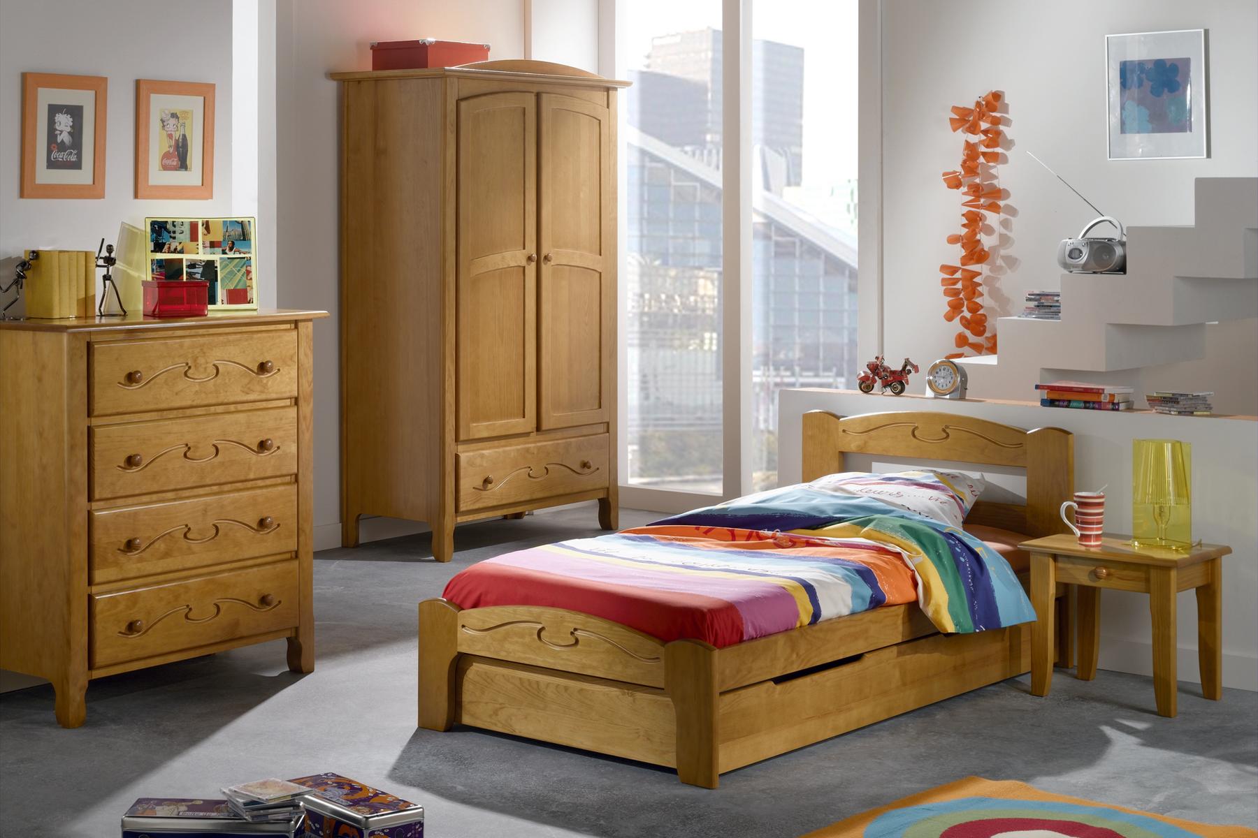 En pin massif, derrière et fonds en contreplaqué ou MDF, côtés en pin massif ou MDF.